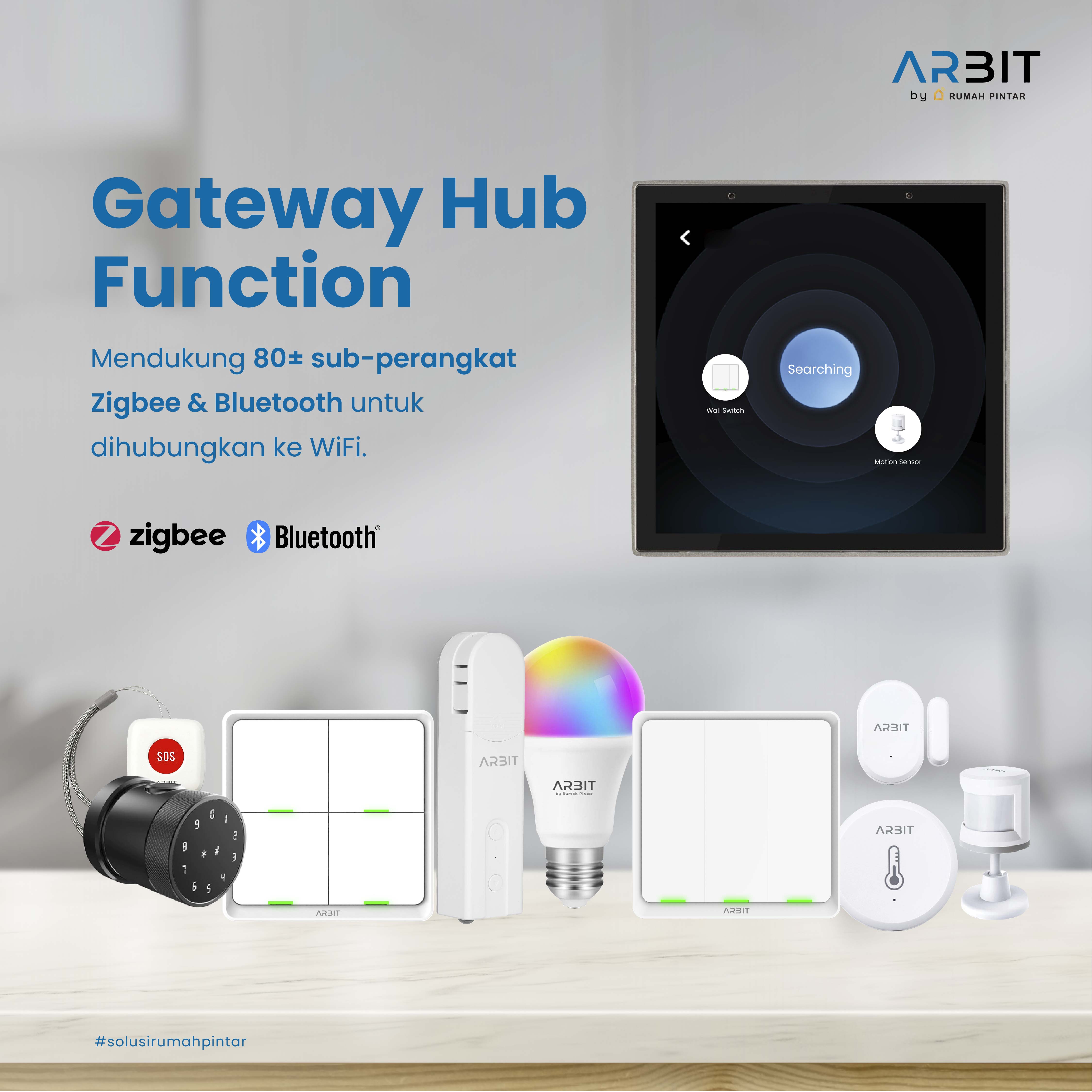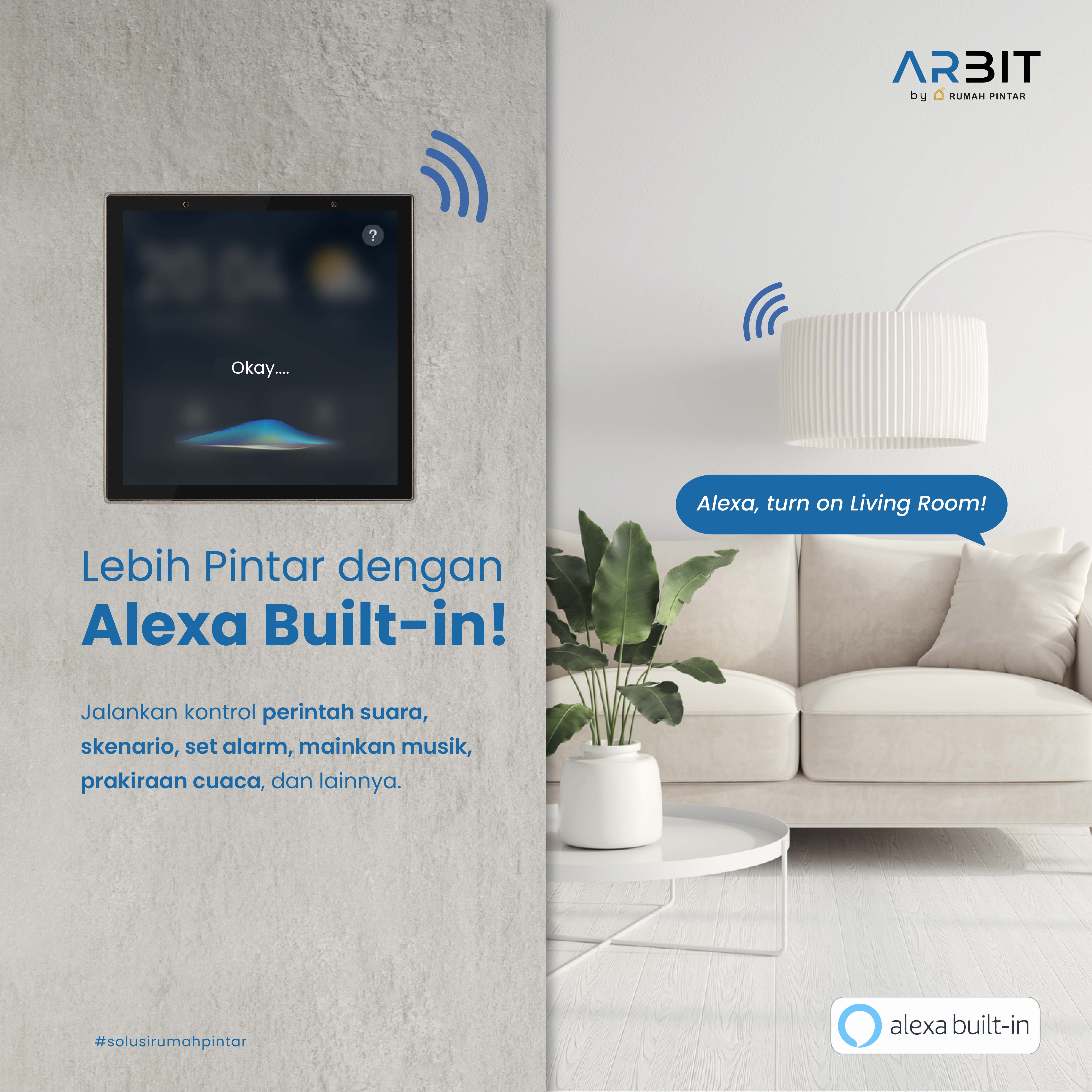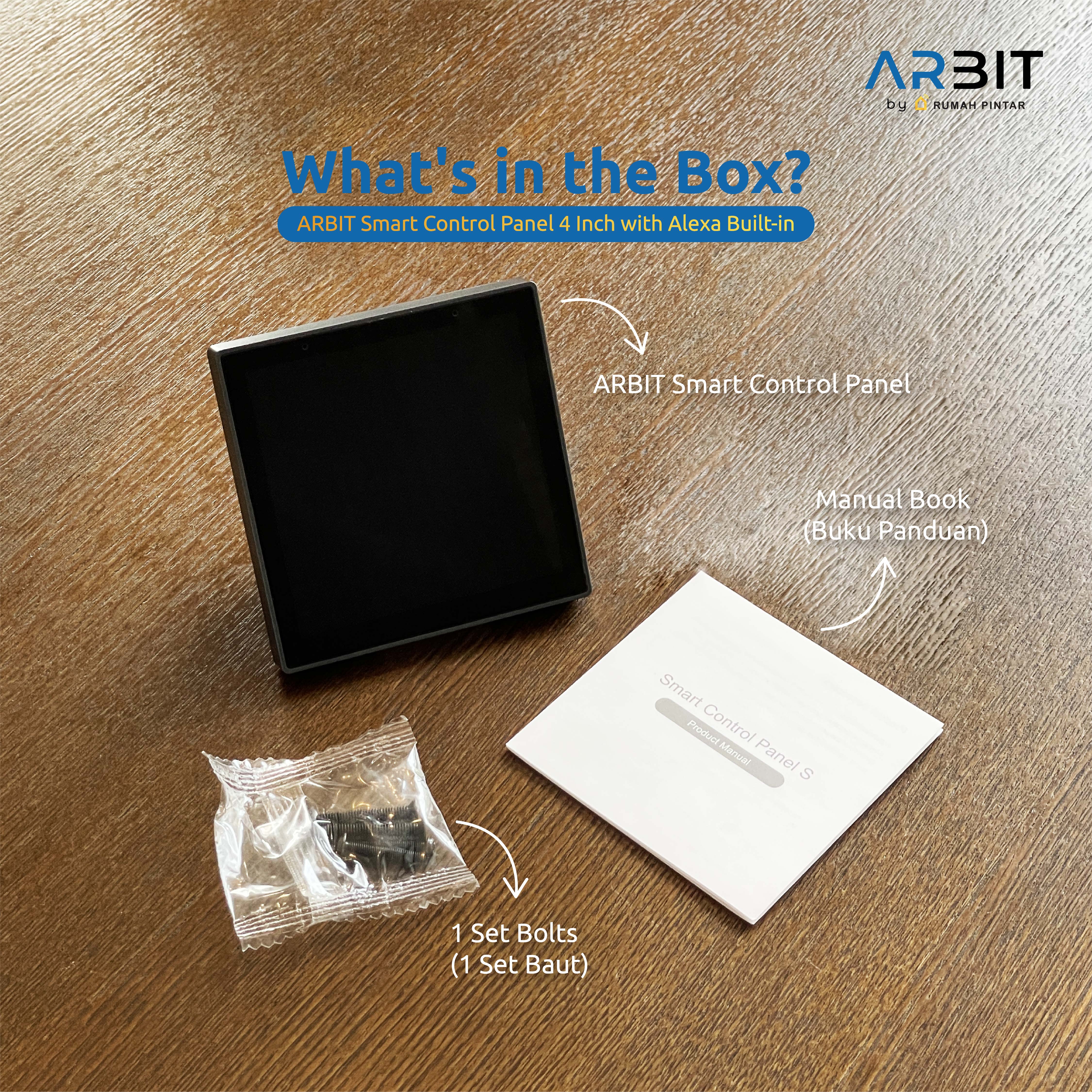 ARBIT Smart Control Panel merupakan produk pelengkap perangkat smart home lainnya, yang memudahkan pengguna untuk melihat status dan mengontrol perangkat smart home lainnya. Control panel juga telah dilengkapi mikrofon & speaker, Multi-mode Gateway Hub (Zigbee & Bluetooth), dan Alexa Built-in.