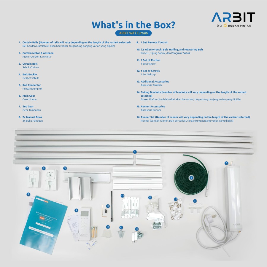 - 1x ARBIT WiFi Curtain (sesuai varian panjang yang dipilih)