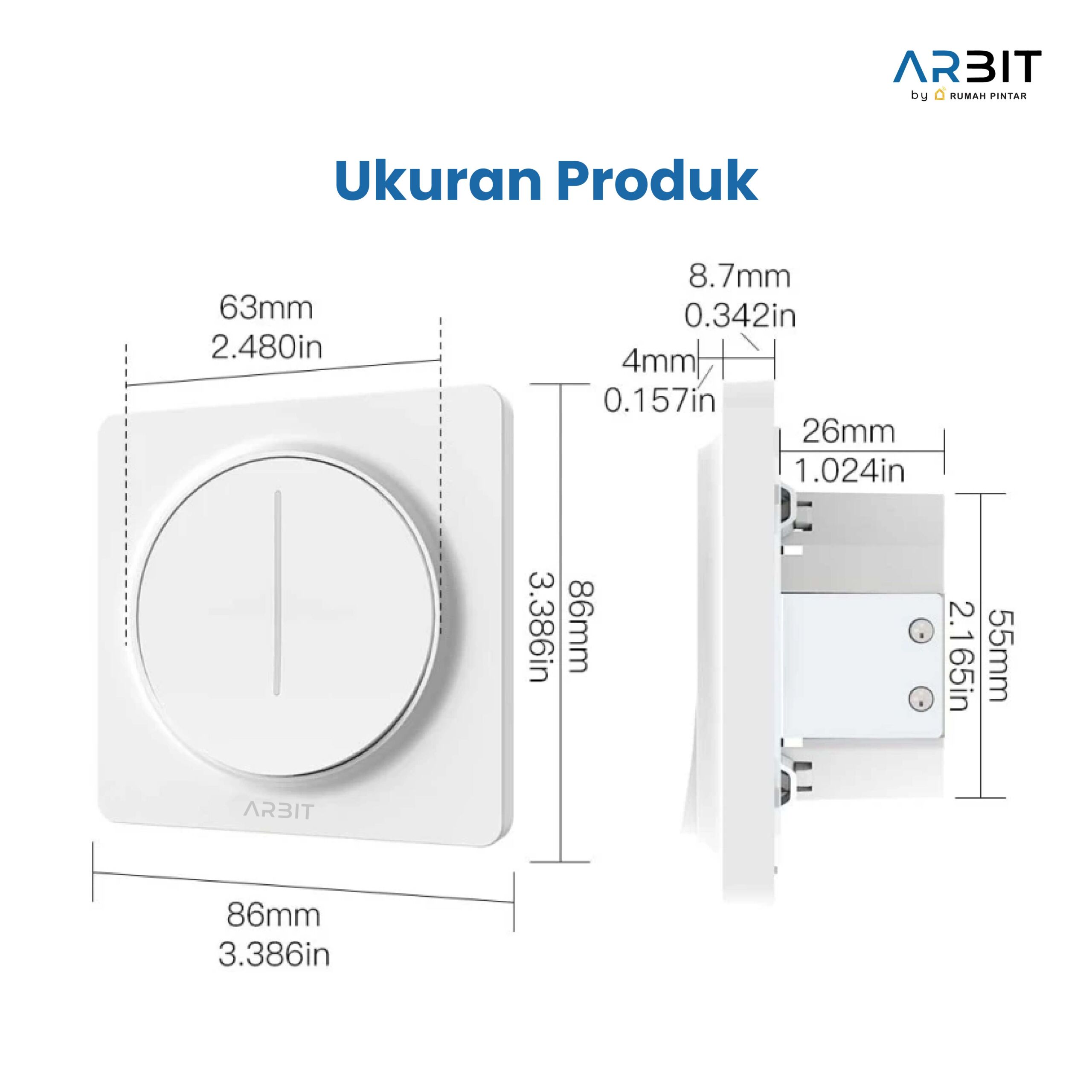 ARBIT WiFi Dimmer Switch adalah saklar dimmer pintar dengan panel sentuh yang memungkinkan pengguna mengatur ON/OFF sekaligus atur tingkat kecerahan lampu secara manual maupun melalui aplikasi. Saklar ini terhubung langsung ke WiFi tanpa gateway tambahan.