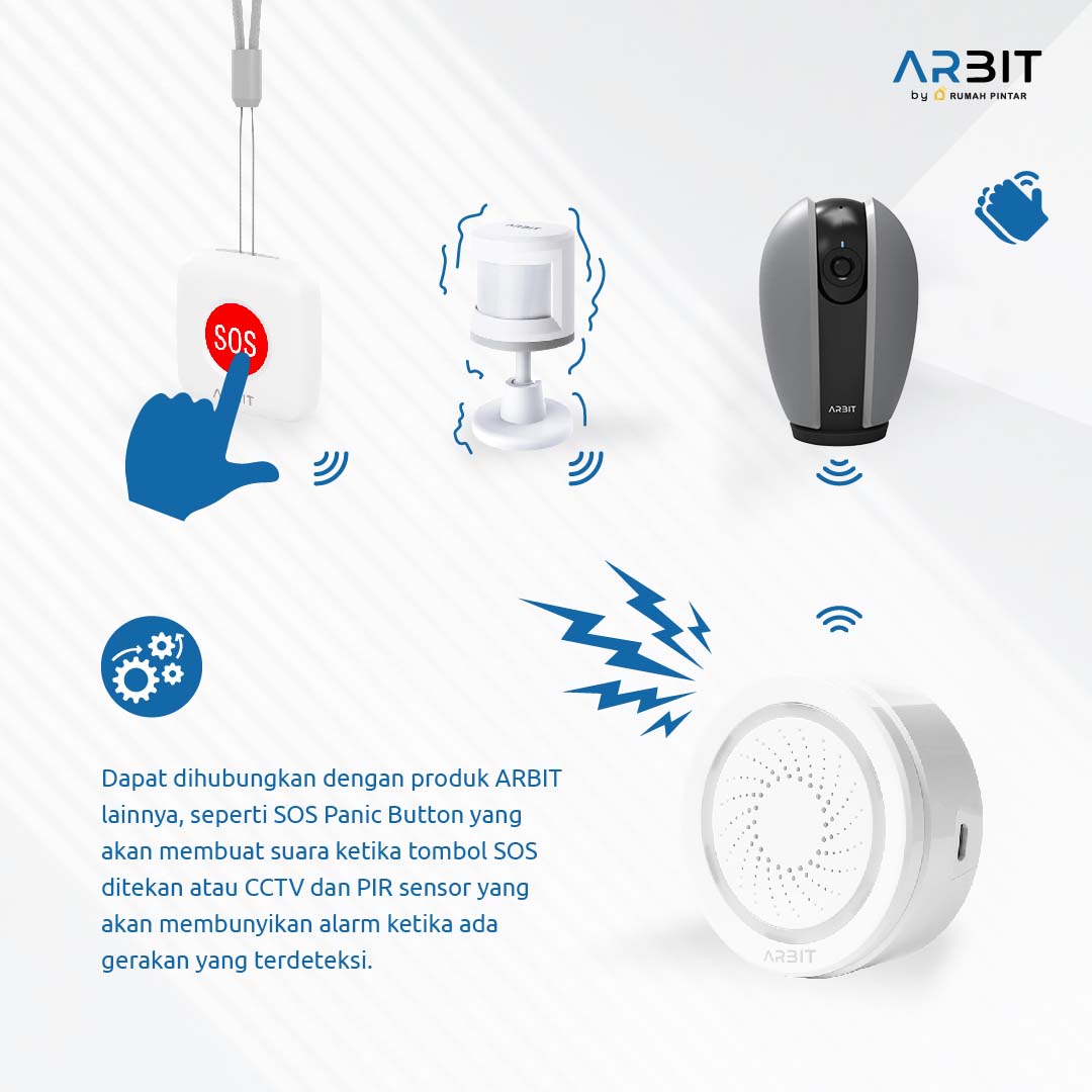 • Flexible Smart-Connectivity: Dapat dihubungkan dengan perangkat ARBIT lain seperti door sensor, motion sensor, smart lock, dan lainnya.